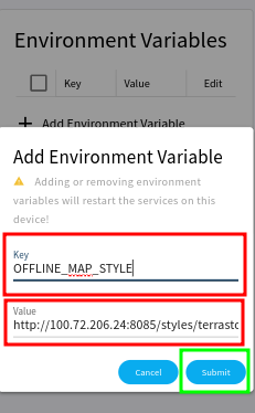 Al cambiar el nombre de host, otras variables necesitan cambiar para reflejar la nueva dirección: `SET_HOSTNAME, HOST_HOSTNAME, OFFLINE_MAP_STYLE`