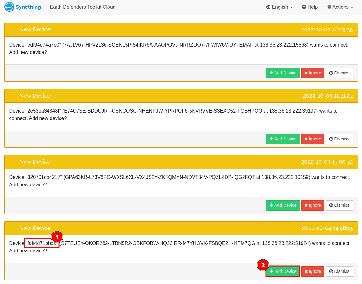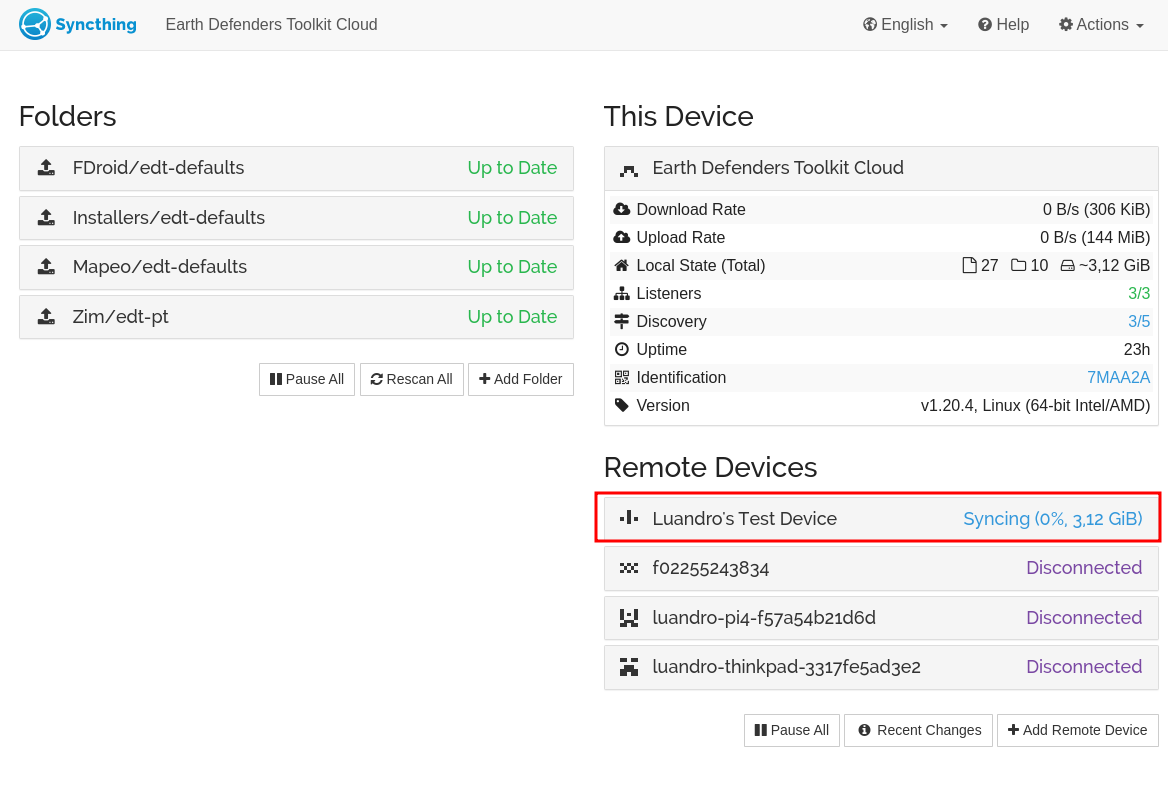 Acesse o serviço [Syncthing](http://sync.earthdefenderstoolkit.com/) na nuvem do EDT e siga os mesmos passos como em [content-syncronization.md](https://docs.earthdefenderstoolkit.com/portugues/device-usage/bundled-applications/content-syncronization).